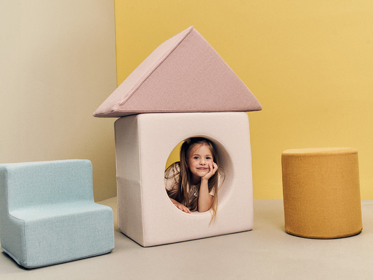 Small armchairs or standard sofas are static. They provide seating, but don’t offer creativity or engaging play. Kids lose interest quickly because the form doesn’t change.