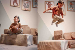 Absolutely. While it pairs perfectly with Shappy Play Sofa (same width cushion), the Trampoline can also be used standalone - as a bounce pad, pouf, or reading pillow.