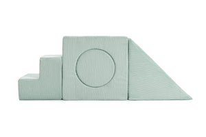 The playset is crafted from high-density foam and covered with a durable, easy-to-clean fabric. All materials are non-toxic and safe for children.