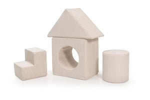 The playset is designed to perfectly complement both sizes of the Shappy play sofas. The elements can be easily arranged to integrate seamlessly with your existing sofa setup, enhancing both playtime and practical use.