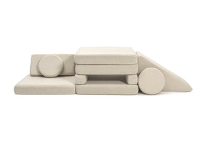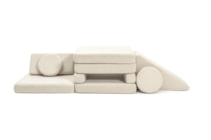 • At the same length as one of your Shappy Play Sofa base cushions, and half the width, The Slide fits perfectly with the sofa cushions for fun builds. It also adds extra stability to your Shappy play sofa builds, perfect for sliding, climbing, tumbling, and somersaulting fun.
