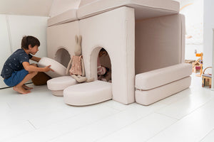 Con los Arcos Shappy, los niños pueden construir castillos, esconderse bajo los cojines del sofá y transformar fácilmente el sofá en una cama o en un asiento elevado.