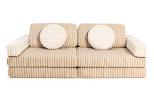 Vivi il lusso con questo divano da gioco premium, perfetto per gli amanti del velluto a coste. Realizzato in tessuto ultra-morbido e soffice, è ideale per i bambini che amano coccolarsi. Questo divano da gioco accogliente ed elegante è perfetto per rilassarsi, giocare e sognare.