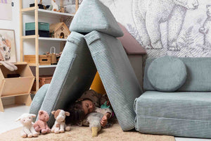De Shappy speelsofa verandert in enkele seconden van een knusse lounge naar forten, glijbanen, logeerbedden en meer. Eén sofa, eindeloze mogelijkheden.