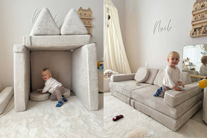 Een modulaire speelbank die meegroeit met je kind. Boje een bank, een kasteel, een glijbaanvoet - of een naadloze speelmat. Ontworpen door ouders in de EU, geliefd bij gezinnen door heel Europa.